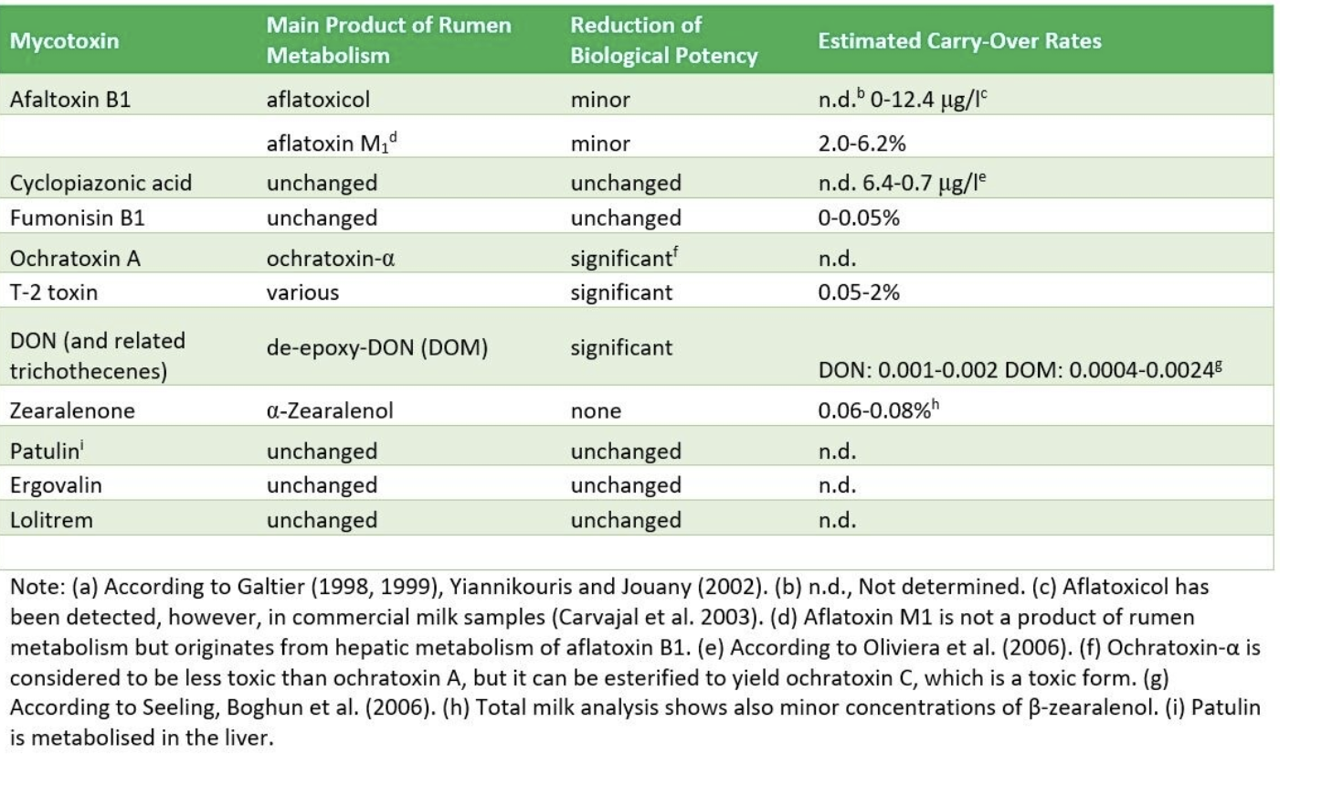 Johanna Fink-Gremmels (2008). Sığır yemlerindeki mikotoksinler ve süt sütüne bulaşma: Bir inceleme, Gıda Katkı Maddeleri ve Kirleticiler: Bölüm A, 25:2, 172-180, DOI: 10.1080/02652030701823142