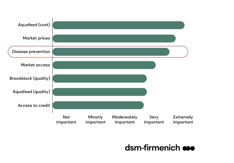 Patojenler su ürünleri yetiştiriciliği için sürekli bir tehdittir ve bu sektörün büyümesi açısından önemli bir darboğazdır. Sektör, fonksiyonel yem kullanımı da dahil olmak üzere hastalık yönetimine daha proaktif bir yaklaşım geliştirmek için değer zinciri boyunca ortaklıklar kurarak işbirliği ve yenilik yapmalıdır. Bunun iki önemli faydası vardır; balıklarımızın ve karideslerimizin sağlığını, refahını ve hayatta kalma oranını artırır, ama aynı zamanda insanlığın, gezegenin ve kârlılığın yararı için antibiyotiklere olan bağımlılığımızı azaltma stratejisini destekler.